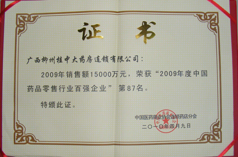 2009年度中國藥品零售行業(yè)百強企業(yè)