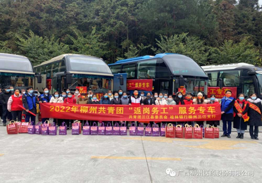 2022年2月9日開(kāi)始,桂中大藥房分別向柳州市柳城團(tuán)縣委、三江團(tuán)縣委、融安團(tuán)縣委及融水團(tuán)縣委捐贈(zèng)一批口罩、醫(yī)用衛(wèi)生濕巾。該批物資將分發(fā)給乘坐返崗愛(ài)心專車的離鄉(xiāng)務(wù)工人員,助力返崗復(fù)工,讓返崗之旅更安全、更安心。
