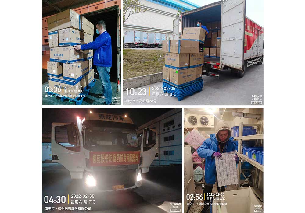 除物資支援幫助外,公司加強(qiáng)在人力上的調(diào)配支持,增加就近倉(cāng)儲(chǔ)的管理人員、物流人員、貨運(yùn)司機(jī)數(shù)量,全力支持完成供應(yīng)保障任務(wù)。尤其負(fù)責(zé)運(yùn)送物資的貨運(yùn)司機(jī),自2月4日首批物資的發(fā)出,至今已連續(xù)作戰(zhàn)十余天。他們冒著被感染的風(fēng)險(xiǎn),奔波于百色市及各縣,有的縣份如隆林、靖西、西林等,地處偏遠(yuǎn),有的尚未有高速直通,加之春節(jié)期間冬雨連綿,往返路程、裝卸就要耗費(fèi)一天時(shí)間。此外由于出入高風(fēng)險(xiǎn)地區(qū),他們的健康碼由綠變紅,生活上帶來(lái)諸多不便,也承受著外界的巨大壓力。但他們排除萬(wàn)難、迎難而上,爭(zhēng)分奪秒完成運(yùn)輸任務(wù),充分展現(xiàn)了柳藥人的責(zé)任與擔(dān)當(dāng)。