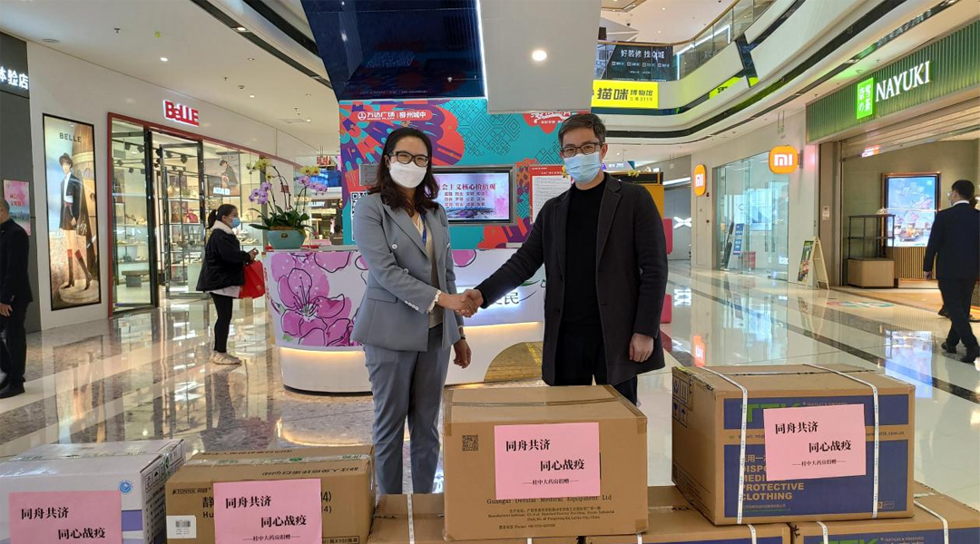 3月29日下午15時(shí),桂中大藥房攜手健合集團(tuán)在柳州城中萬達(dá)舉行防疫物資捐贈(zèng)活動(dòng)。隨后,副總經(jīng)理陳曉遠(yuǎn)先生、劉淑琴女士、健合集團(tuán)代表與城中萬達(dá)相關(guān)領(lǐng)導(dǎo)積極交流防疫工作經(jīng)驗(yàn),城中萬達(dá)相關(guān)領(lǐng)導(dǎo)對(duì)本次捐贈(zèng)活動(dòng)表示感謝。