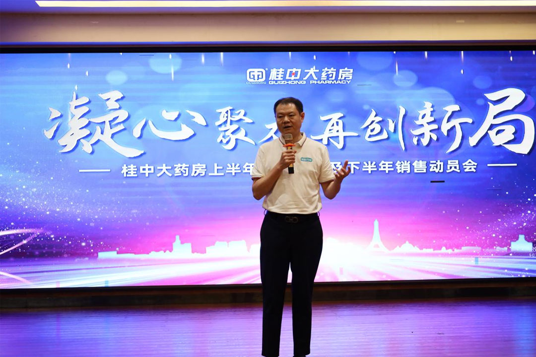 7月11日,2022年桂中大藥房半年經(jīng)營分析會及下半年銷售動員會成功舉辦。本次會議總經(jīng)理肖俊雄先生勉勵(lì)全體同仁,希望在新的行業(yè)形勢下,大家能夠“凝心聚力·再創(chuàng)新局”!