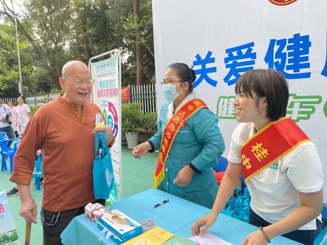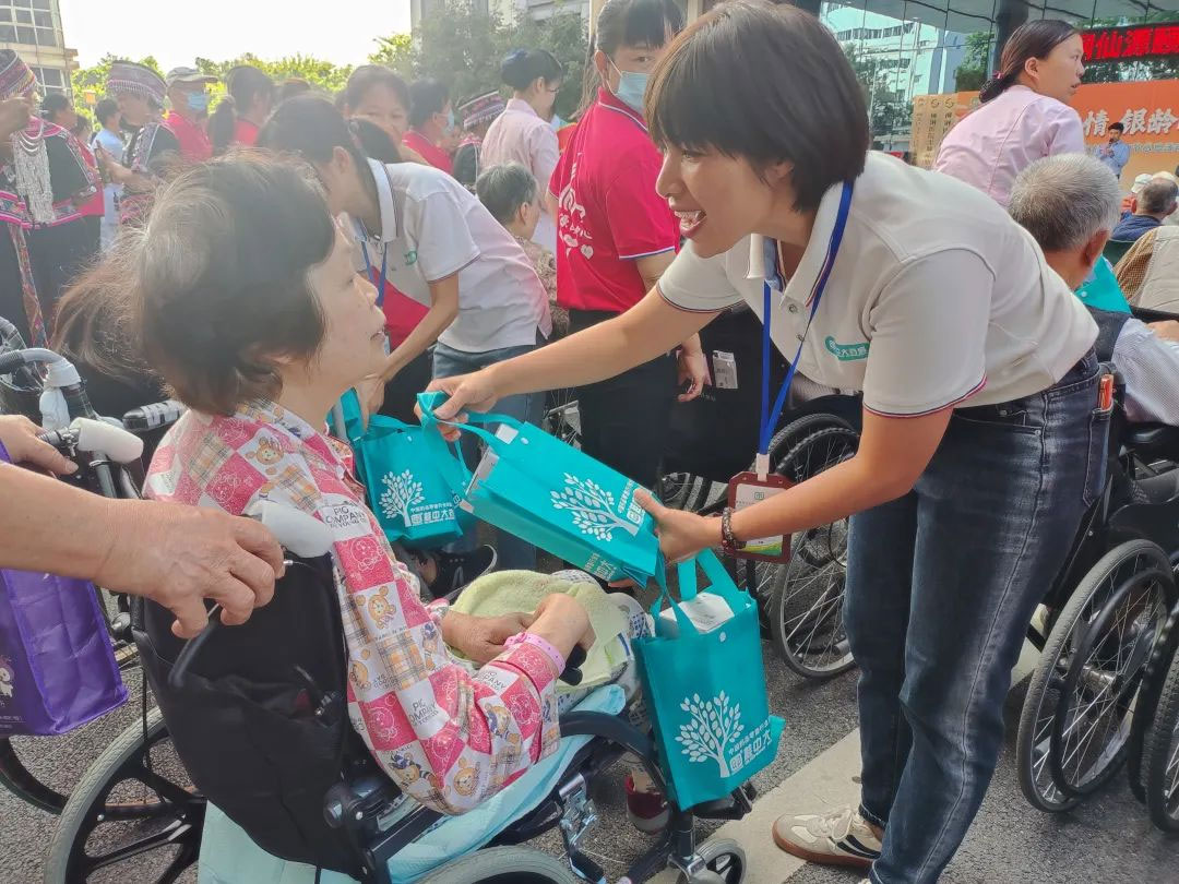 表演間隙,桂中大藥房工作人員為在場(chǎng)老人贈(zèng)送暖心伴手禮。