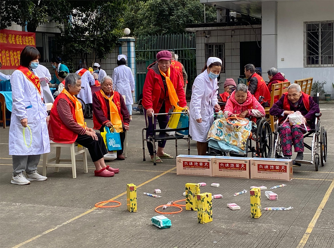 還邀請合作伙伴仲景宛西制藥,為養(yǎng)老院里的老年朋友準(zhǔn)備了套圈益智小游戲,老年朋友們結(jié)束義診項(xiàng)目后,紛紛來到游戲?qū)^(qū),被豐厚的獎(jiǎng)品吸引,爭先搶后的玩起套圈游戲。