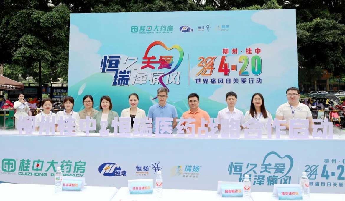 在4月20日世界痛風(fēng)日當(dāng)天,桂中大藥房攜手恒瑞醫(yī)藥在城中萬達廣場啟動高尿酸項目,并聯(lián)合舉辦了一場主題為“恒久關(guān)愛 瑞澤痛風(fēng)”的大型公益路演活動。該活動旨在提升公眾對高尿酸血癥及其引發(fā)的痛風(fēng)疾病的認識,并推廣科學(xué)的預(yù)防和治療方法。