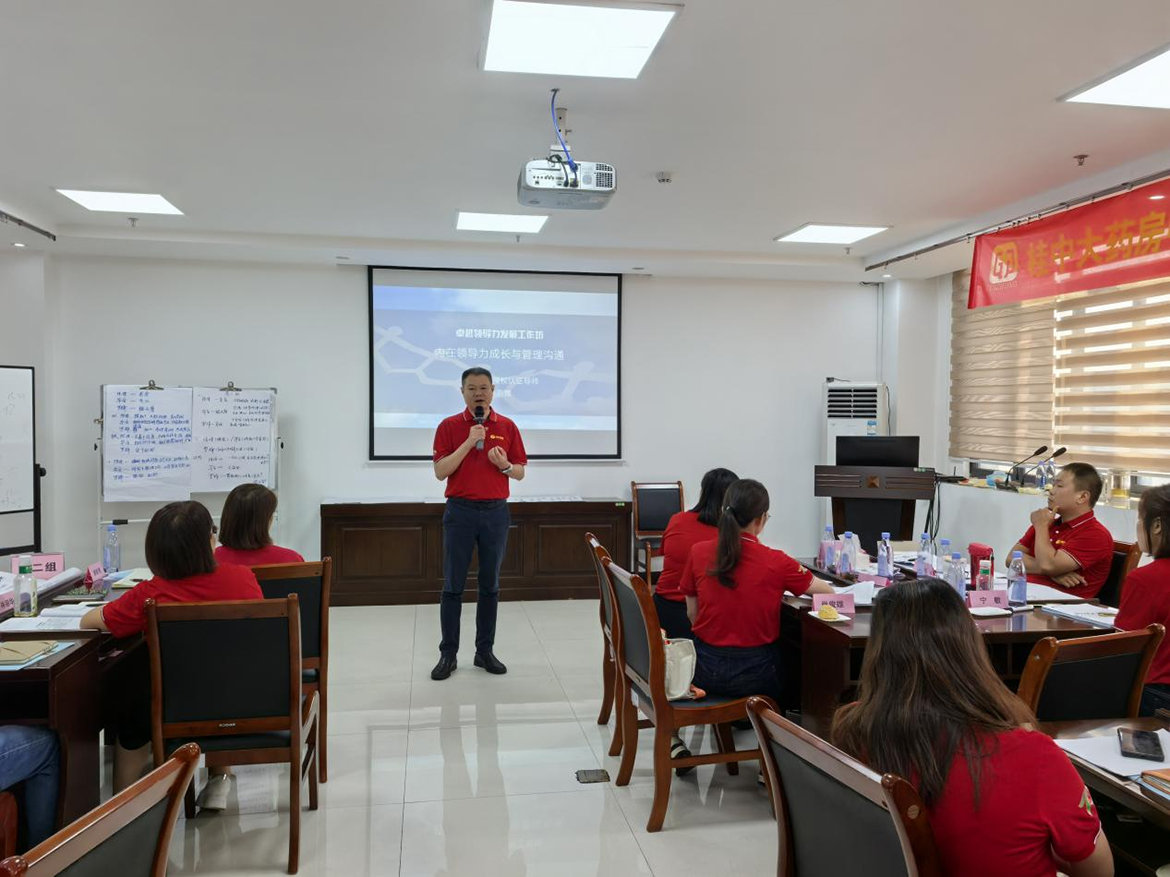 2024年8月24-25日,公司邀請(qǐng)美國(guó)PDP中國(guó)區(qū)授權(quán)認(rèn)證培訓(xùn)導(dǎo)師、暨南大學(xué)創(chuàng)業(yè)學(xué)院黃埔分院執(zhí)行院長(zhǎng)余老師開(kāi)展《卓越領(lǐng)導(dǎo)力—內(nèi)在領(lǐng)導(dǎo)力成長(zhǎng)與管理溝通》培訓(xùn)。此次培訓(xùn)旨在幫助中高層管理人員了解自己的行為風(fēng)格及團(tuán)隊(duì)優(yōu)勢(shì)和盲點(diǎn),從而揚(yáng)長(zhǎng)避短,提升個(gè)人領(lǐng)導(dǎo)力,打造高效團(tuán)隊(duì)。桂中大藥房高層領(lǐng)導(dǎo)、總監(jiān)級(jí)管理人員及職能部門(mén)負(fù)責(zé)人參加了該培訓(xùn),集團(tuán)人力資源中心部長(zhǎng)、桂中大藥房副總經(jīng)理胡龍英女士為培訓(xùn)做開(kāi)場(chǎng)致辭。