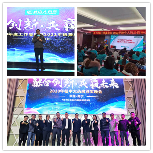 2021年1月6日,桂中大藥房“融合創(chuàng)新、共贏未來(lái)” 2020年度工作總結(jié)暨2021年銷售動(dòng)員會(huì),以網(wǎng)絡(luò)直播形式,柳州、南寧、桂林、來(lái)賓、河池、玉林、賀州7個(gè)會(huì)場(chǎng)同時(shí)舉行,桂中的親人們?cè)谕粫r(shí)間,不同地域,共同參與此盛會(huì)。