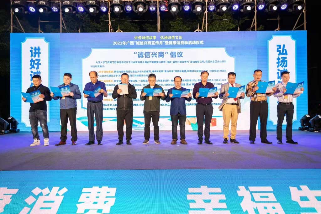 10月12日晚,由自治區(qū)商務(wù)廳聯(lián)合區(qū)藥監(jiān)局舉辦的廣西健康消費(fèi)季于柳州城中萬(wàn)達(dá)廣場(chǎng)舉行了盛大的啟動(dòng)儀式,自治區(qū)商務(wù)廳副廳長(zhǎng)粟堅(jiān)、柳州市政府二級(jí)巡視員莫仲彪及各行業(yè)協(xié)會(huì)代表、藥品流通企業(yè)代表出席啟動(dòng)儀式。桂中大藥房常務(wù)副總經(jīng)理鄧瑞太代表桂中大藥房參加儀式并發(fā)表誠(chéng)信經(jīng)營(yíng)倡議。